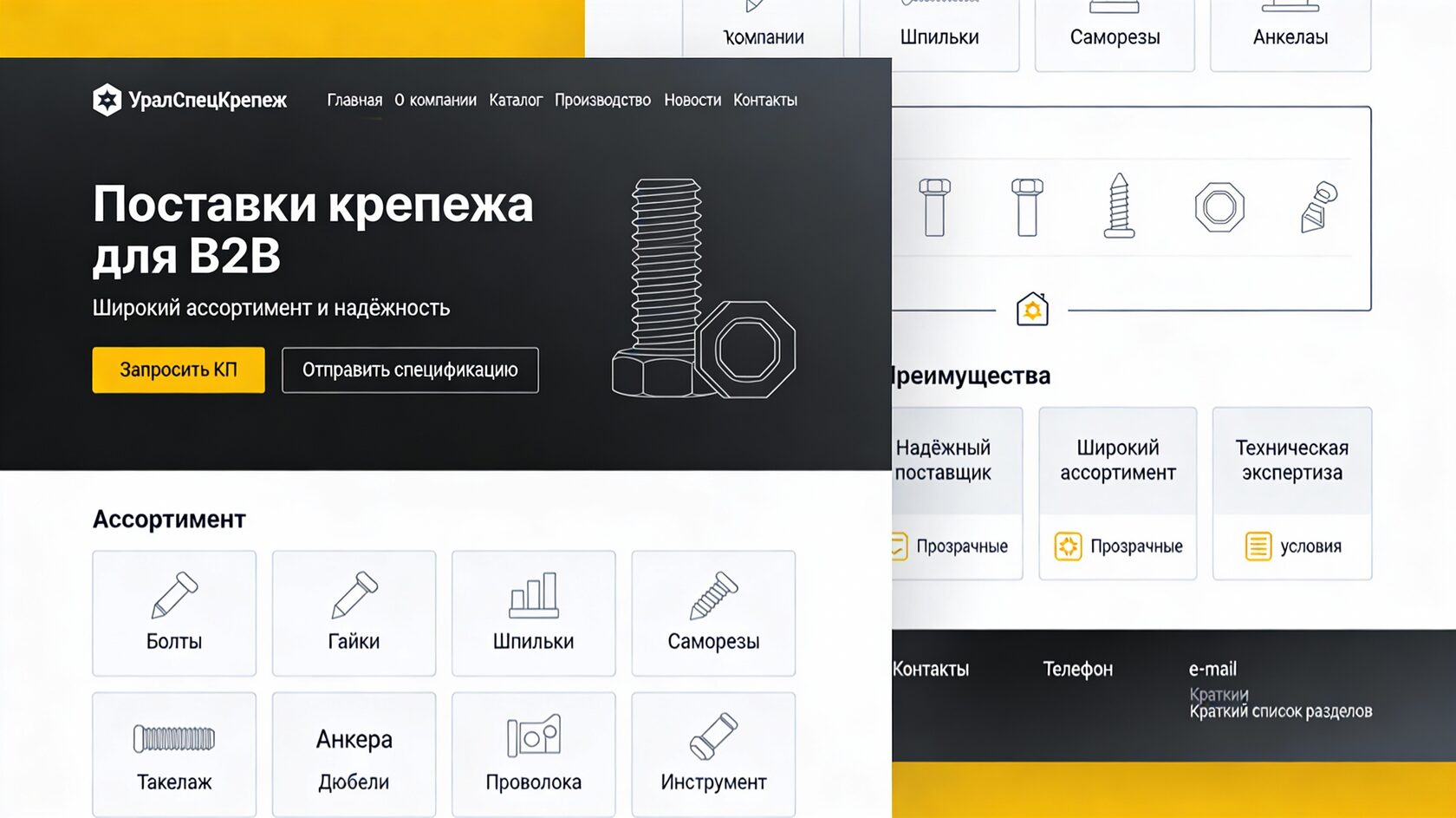 Болты — это универсальные резьбовые крепёжные изделия, которые применяются для соединения и фиксации деталей в строительстве, машиностроении, производстве металлоконструкций, мебели и оборудовании. Они представляют собой металлический стержень с наружной резьбой и головкой под инструмент, к которому подбирается гайка и, при необходимости, шайбы для равномерного распределения усилия затяжки. Такое соединение относится к разъёмным: узел можно многократно собирать и разбирать без повреждения основных деталей, что удобно при монтаже, сервисе и модернизации конструкций.